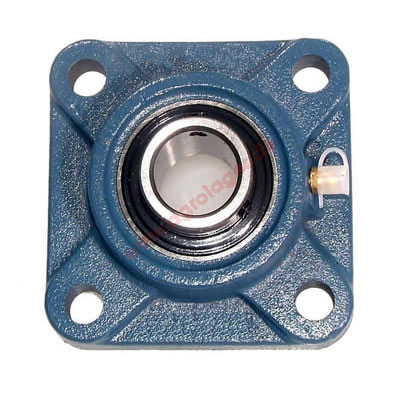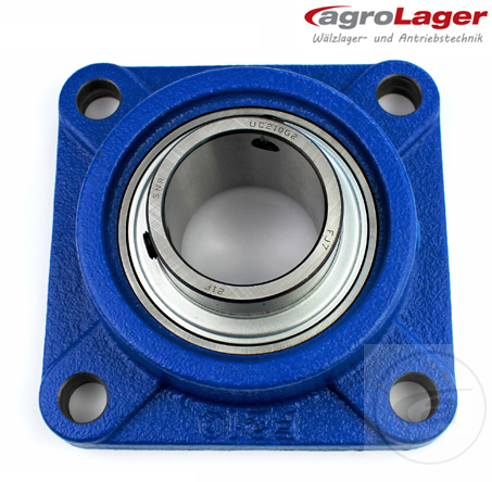 4-Loch Graugussgehäuse mit Schmiernippel, der Lagerinnenring wird mit 2 Imbussschrauben auf der Welle befestigt.
