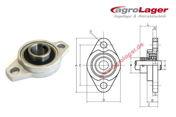 Flanschlager -Silber Serie- KFL003 komplett, für 17 mm Welle, Befestigung mit Madenschrauben