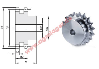 Kettenrad mit Nabe Typ 12B-2(3/4 x 7/16) - 17 Zähne, duplex, vorgebohrt mit 20 mm