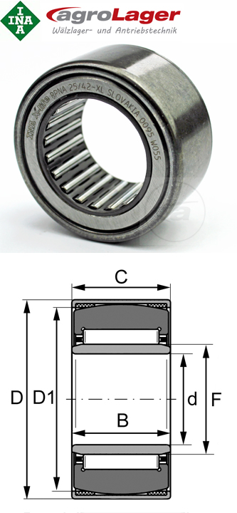 Einstell-Nadellager PNA25/47-XL INA 25x47x20