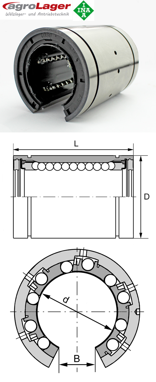 Linear-Kugellager KBO20-PP-AS INA 20x32x45 - massiv Reihe