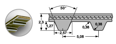 Zahnflachriemen 110 XL - 025 (6,35 x 279,4 mm) - ( 1/4 x 11 Zoll) - Neoprene