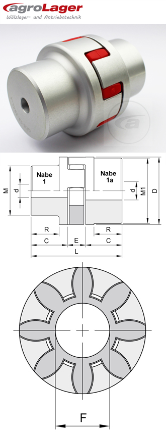 Komponenten:2 Kupplungsnaben Typ 28 und 1 Zahnkranz 92 Shore A
