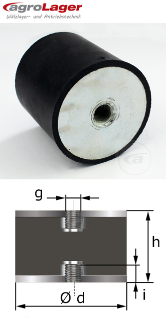 Metall-Gummipuffer MGP 3-100-60 Typ 3, beidseitig Innengewinde aus Stahl / Naturkautschuk, Ø 60, Höhe: 100 mm
