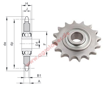 Kettenspannrad komplett mit Kugellager, Typ 081-1(1/2 x 1/8) - 18 Zähne, Bohrung 16.2 0/+0.1 mm