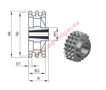 [Kettenrad TL Typ 16B-3 - 57 Zähne, dreifach, für Taperbuchse 404]