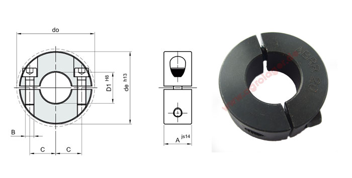 Geteilter Klemmring für 25 mm Welle, 25x45x15 brüniert